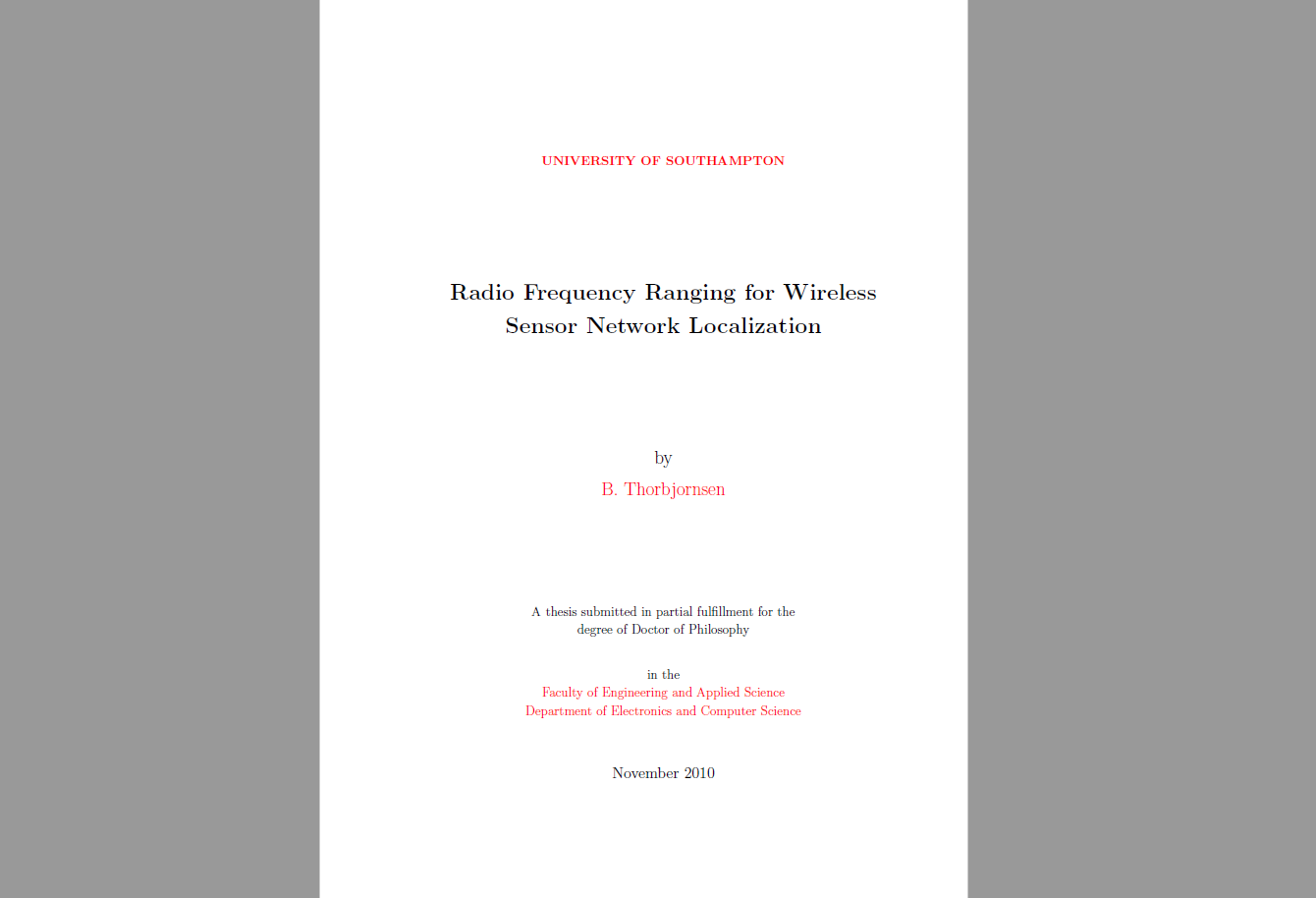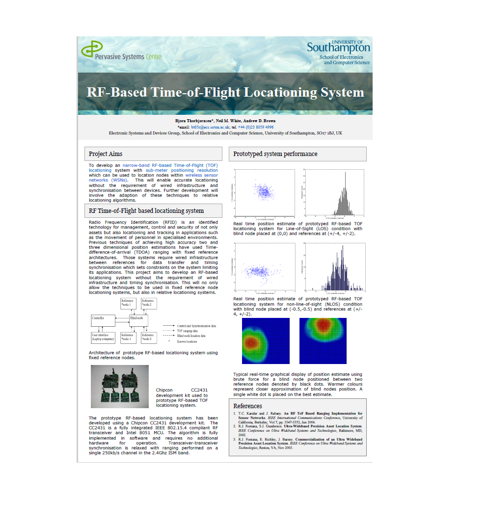 The development of fully integrated, low-power, low-cost communications equipment over recent years have led to the development of wireless sensor networks (WSNs) for many monitoring, control and tracking applications [1–3]. Determining the position of sensor nodes within those networks is important in order to provide additional information to the quantity being measured. Sensor nodes are often deployed without a prior knowledge of their location and therefore a method to determine their absolute or relative position is required.